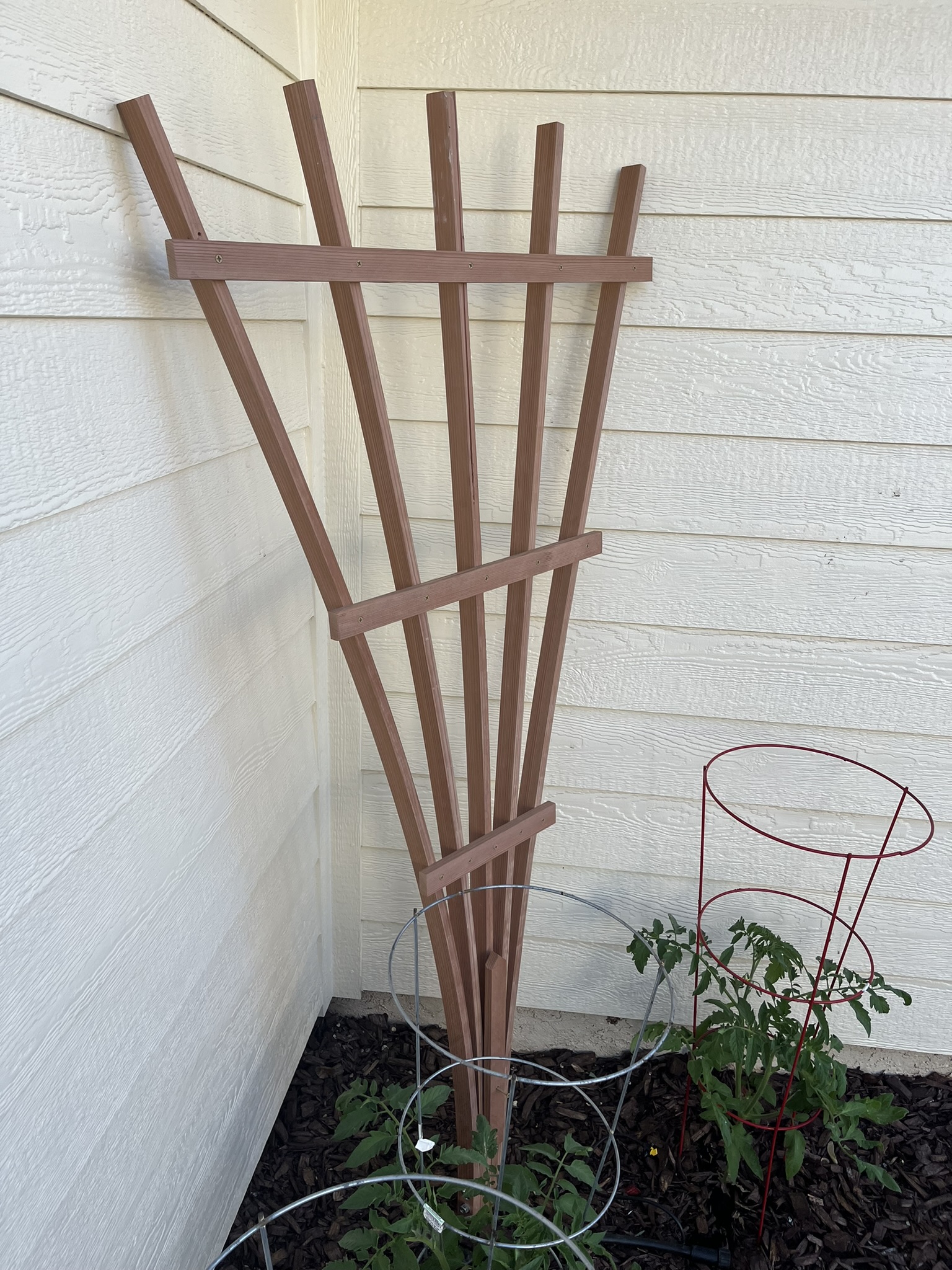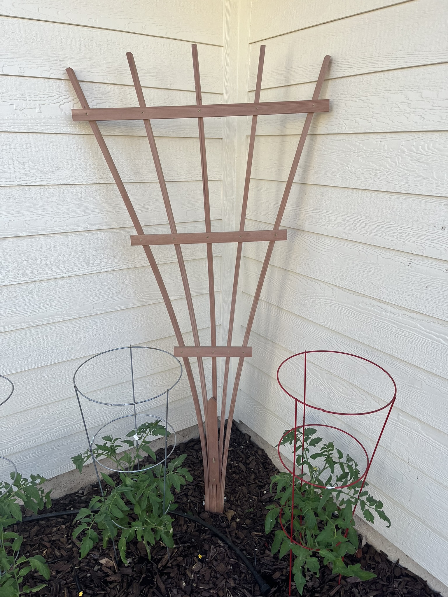 My sturdy wooden trellises are made of 3/4″ redwood and deck screws. These are not the flimsy stapled trellises that only make it one season. These are handmade in Flagstaff Arizona and meant to last for years. The trellis comes with a moveable stake and is 6′ tall. Local delivery only at this time. $65